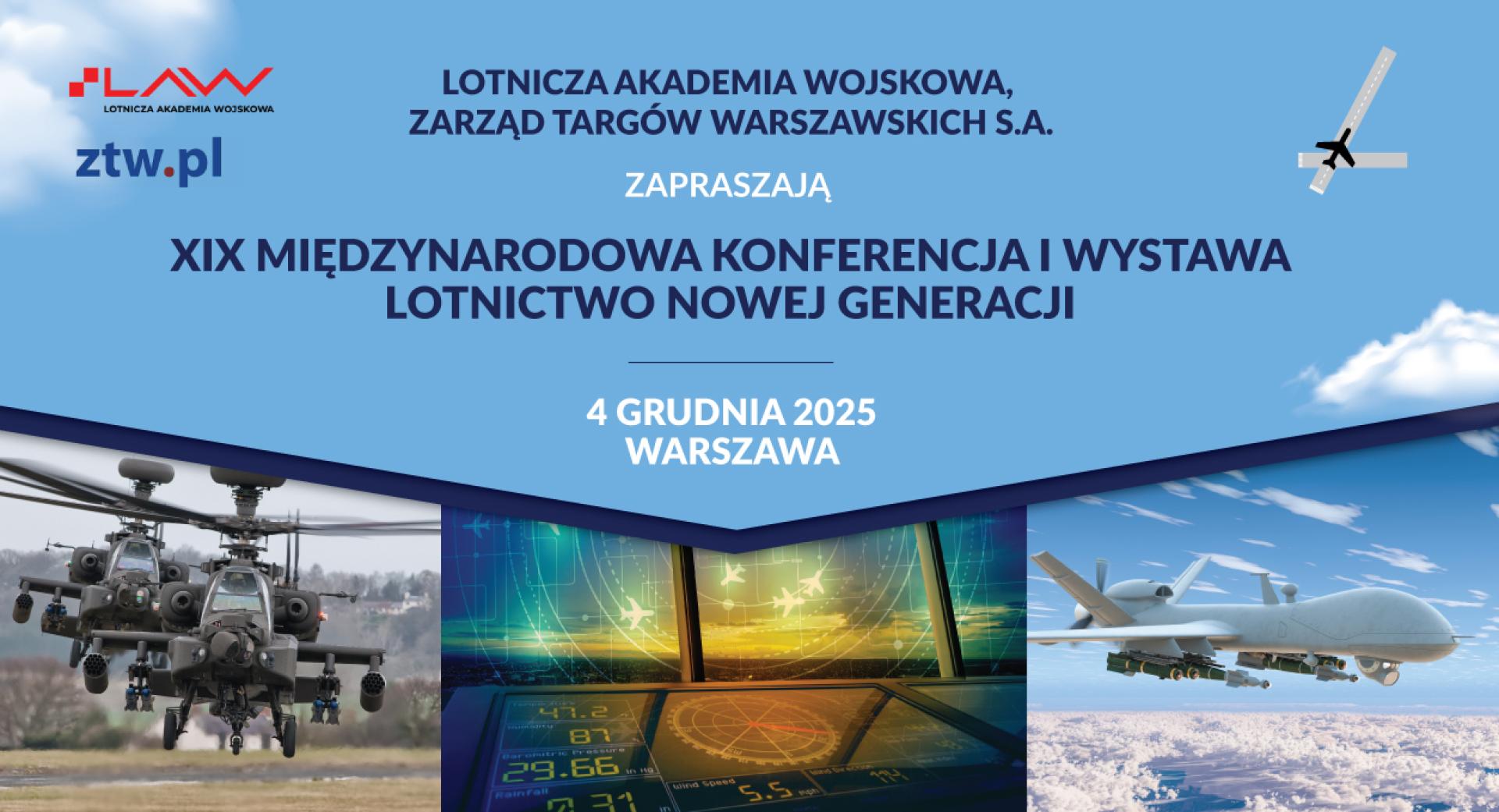 Już 4 grudnia 2025 roku w Warszawie, przedstawiciele środowiska lotnictwa wojskowego, cywilnego oraz general aviation spotkają się na organizowanej po raz dziewiętnasty przez Lotniczą Akademię Wojskową w Dęblinie oraz Zarząd Targów Warszawskich S.A. Międzynarodowej Konferencji i Wystawie „Lotnictwo Nowej Generacji 2025” aby debatować o wyzwaniach jakie stoją przed Siłami Powietrznymi RP, liniami lotniczymi, portami lotniczymi oraz wszystkimi innymi podmiotami związanymi z awiacją.