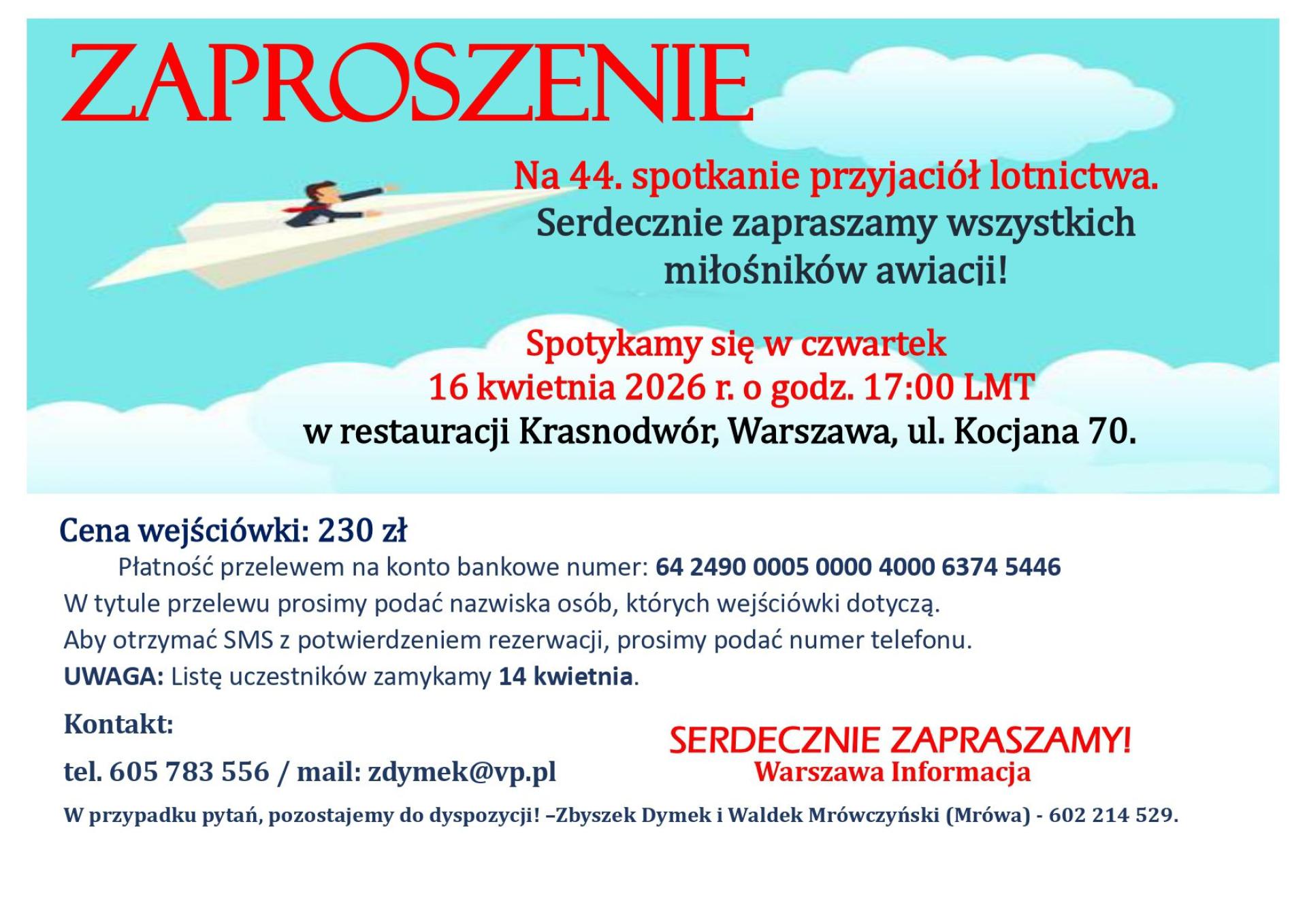 Zaproszenie na 44 Spotkanie Przyjaciół Lotnictwa