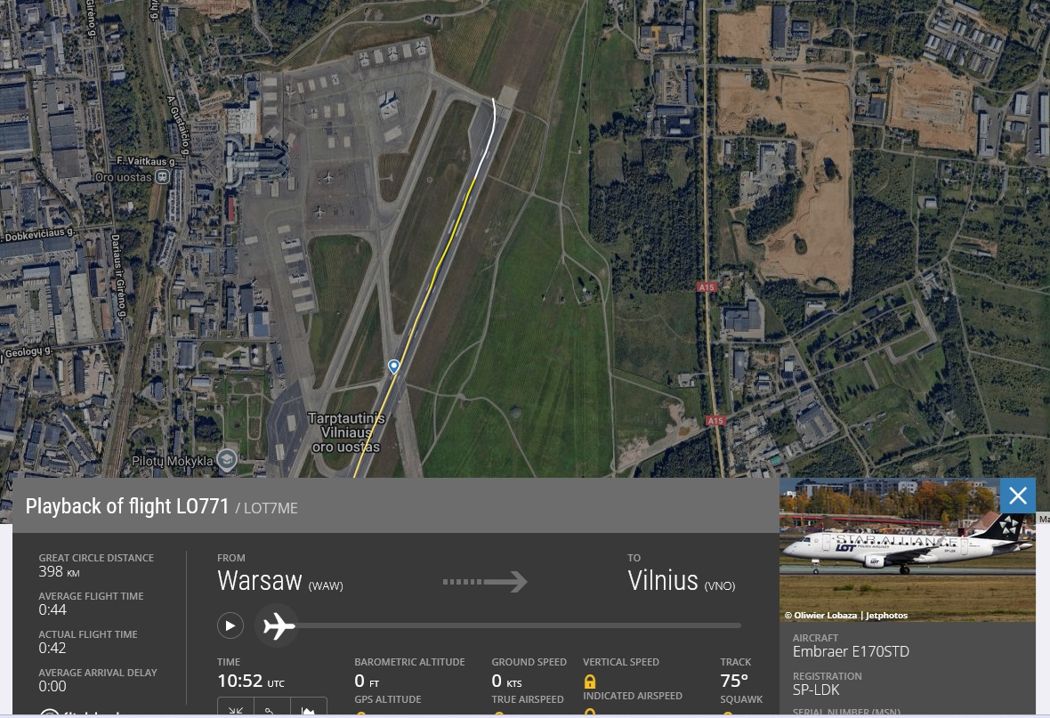 26 listopada 2025 r., o 1142 UTC, Embraer EMB-170 należący do Polskich Linii Lotniczych LOT (znaki rejestracyjne SP-LDK) wypadł z pasa podczas lądowania na lotnisku w Wilnie (VNO). Informację na ten temat opublikował litewski portal lrt.lt.