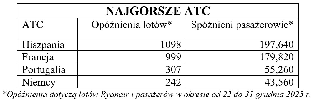 Linia lotnicza Ryanair opublikowała 8 stycznia tabelę „ATC Grinches”, ujawniającą tych, którzy utrudnili świąteczne podróże ponad 600 000 pasażerom Ryanair w okresie świątecznym.